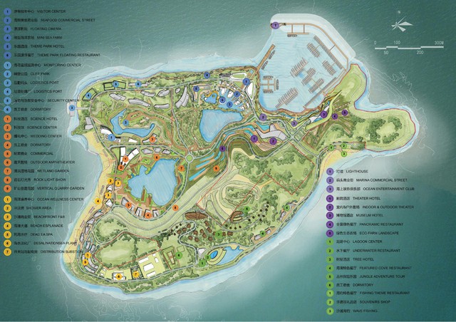 2011年4月,国家海洋局正式公布了中国首批176个可以开发利用的无居民海岛,三角岛属于其一。全岛自然形态表面积96.5公顷。 本项目历时三年,在过程中通过全域出发,对生态本底、无人岛场地、气候、海岛风貌等方面进行全方位设计研究与探索,以生态修复为主体,以适度旅游开发为支撑,集科普教育、海上运动、主题体验和休闲度假于一体的海岛旅游综合体。试图在无人岛建造与开发设计方面达到一个综合、完善的旅游生态岛的设计项目案例。