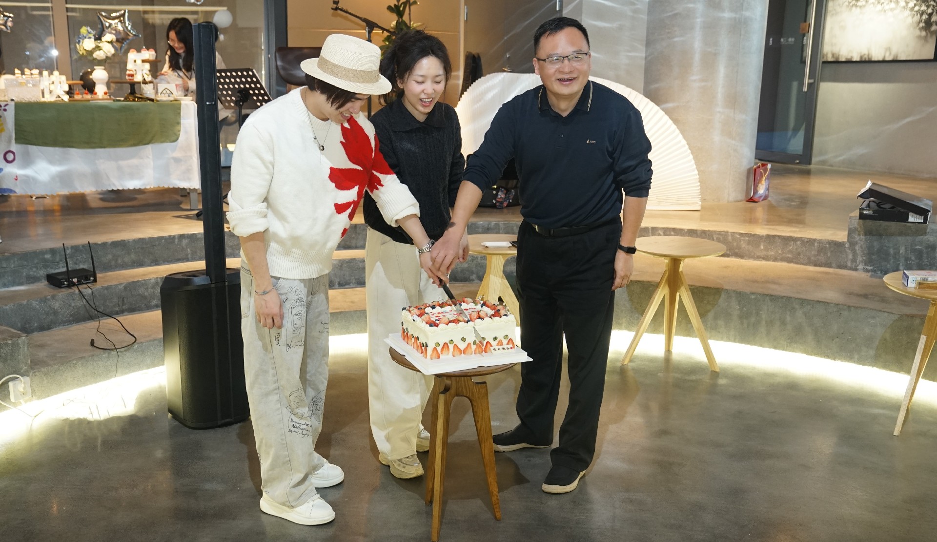 工会主席陈列基与员工代表共同切生日蛋糕