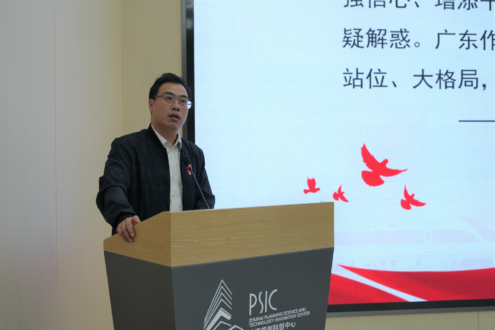 专题讲座后,市规划院党委书记、副院长谭文杰结合工作实际,以《深学全会精神 锚定‘十五五’坐标 以党建引领规划院业务转型新跨越》为题讲授专题党课。他紧扣全会精神,提出了市规划院的转型方向与实践路径。他强调,全院党员干部要自觉用全会精神武装头脑、指导实践,把准“十五五”发展脉搏,聚焦国家重大战略和珠海市重点工作,在城市空间布局优化中绘好“发展蓝图”,在市政基础设施完善中筑牢“民生基石”,在数字化转型赋能中激活“创新引擎”,在服务新质生产力方面开拓“发展新局”,努力在服务珠海高质量发展、助力粤港澳大湾区建设中彰显专业担当。