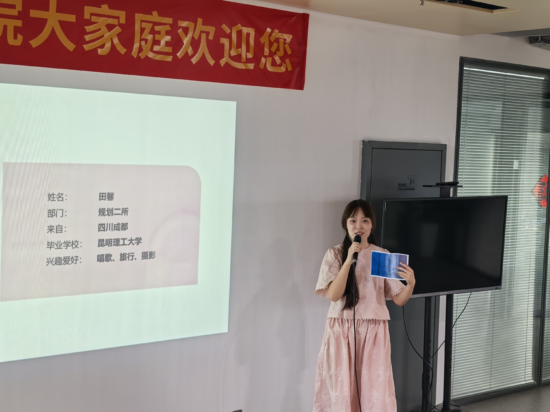 迎新会以新人自我介绍拉开序幕。六位伙伴依次登场,他们有的刚刚走出校园,带着对规划事业的满腔热忱;有的拥有实践经验,希望在新平台上实现更大突破。从专业背景到职业规划,从个人爱好到团队期待,新人的分享真诚又鲜活。台下的同事们认真倾听,不时报以掌声。