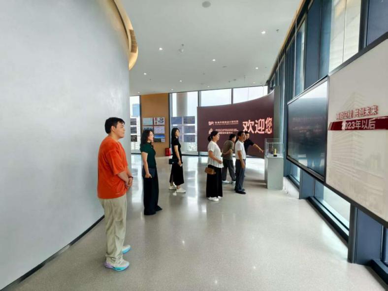 随后,来宾驻足1楼荣誉墙及13楼展馆,张一恒详细介绍了我院发展历程、核心业务领域及历年荣誉成果,生动展现了我院在珠海城市规划建设中的深度参与和行业贡献。