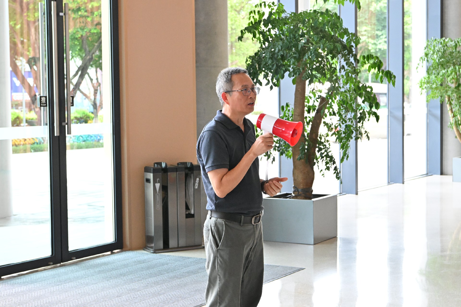 今年6月是全国第24个“安全生产月”,主题为“人人讲安全、个个会应急——查找身边安全隐患”。为深入贯彻落实国家、省、市关于安全生产的工作要求,增强全员安全意识和火灾自救避险能力,提高安全应急响应水平,6月24日下午,我院在珠海规划科创中心开展了消防疏散实战演练活动。活动由副院长王兴主持,院长罗启添,全院各部门、各承租单位、物业服务中心等共160余人参加了活动。