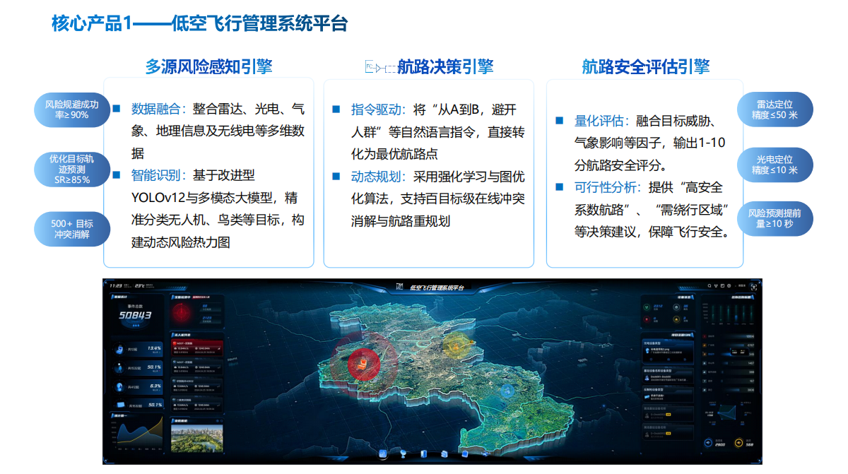本项目由珠海中科慧智科技有限公司与珠海市规划设计研究院联合研发,旨在构建城市低空安全监测系统平台,以应对低空经济快速发展中出现的“黑飞”、扰航等安全风险。该系统集成了雷达探测、光电识别、频谱监测等多源数据,依托 AI 大模型实现目标识别、航路规划与风险预警,支持自然语言指令操作,响应时间低于10秒。目前,该系统已应用于珠海金湾机场、厦门高崎机场等重点场景,累计处理52起“黑飞”事件,提升物流效率30%,提高救援响应速度50%。项目具备多场景适配能力,可为政府、企业提供低空监管解决方案,助力低空经济的安全发展。