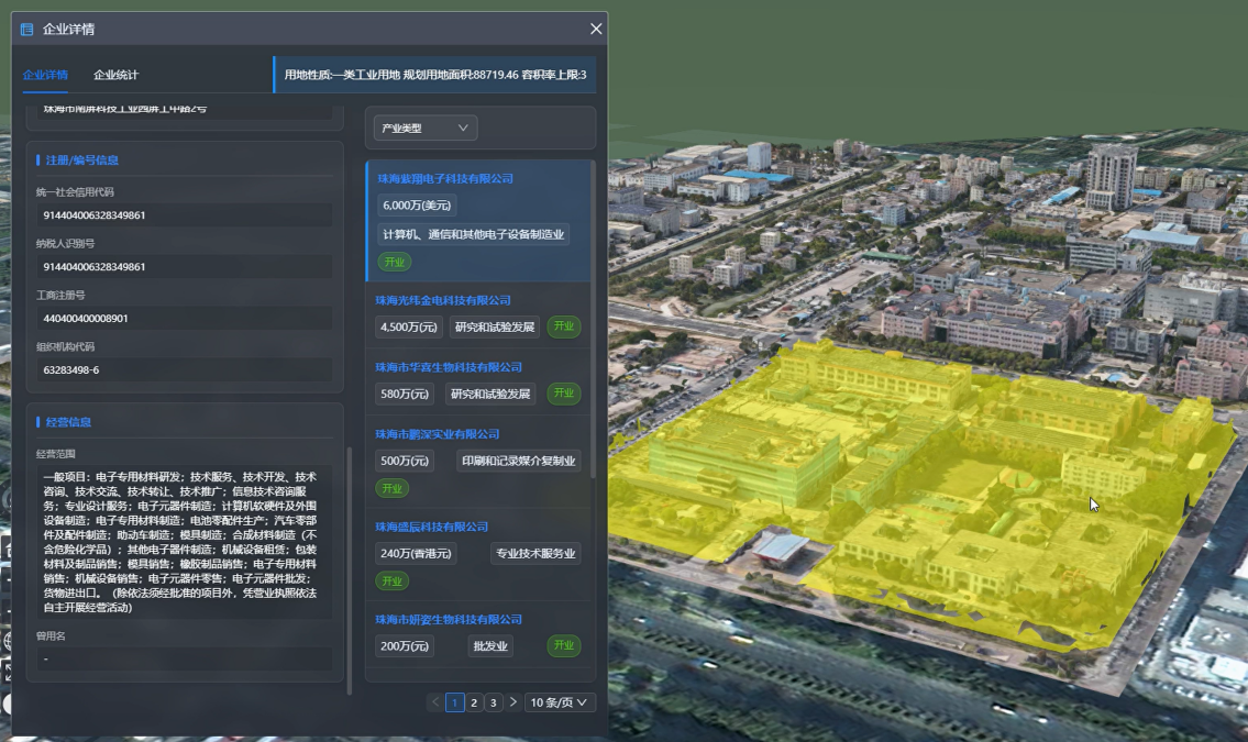 当前,珠海市产业用地分布广泛、权属复杂,缺乏动态共享数据库,土地信息、企业信息、经济贡献信息等分散且不透明,监管和资源配置效率低下。通过开发产业用地招商大脑平台,打造产业用地全景数据库、招商智能匹配引擎、用地效能监测系统和空间决策支持系统等四大功能板块,可实现全市产业用地 GIS 可视化“一张图”,使招商实现数据驱动、科学决策,提供全周期运营支持和定制化输出服务。