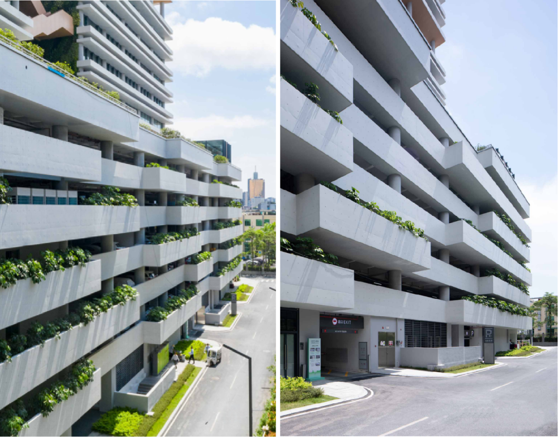 1~6层组成全龄友好空间,建筑以开放姿态服务社会;敞开式立体绿化车库设计,降低噪音尾气,为城市公共空间带来新意与亲和力。